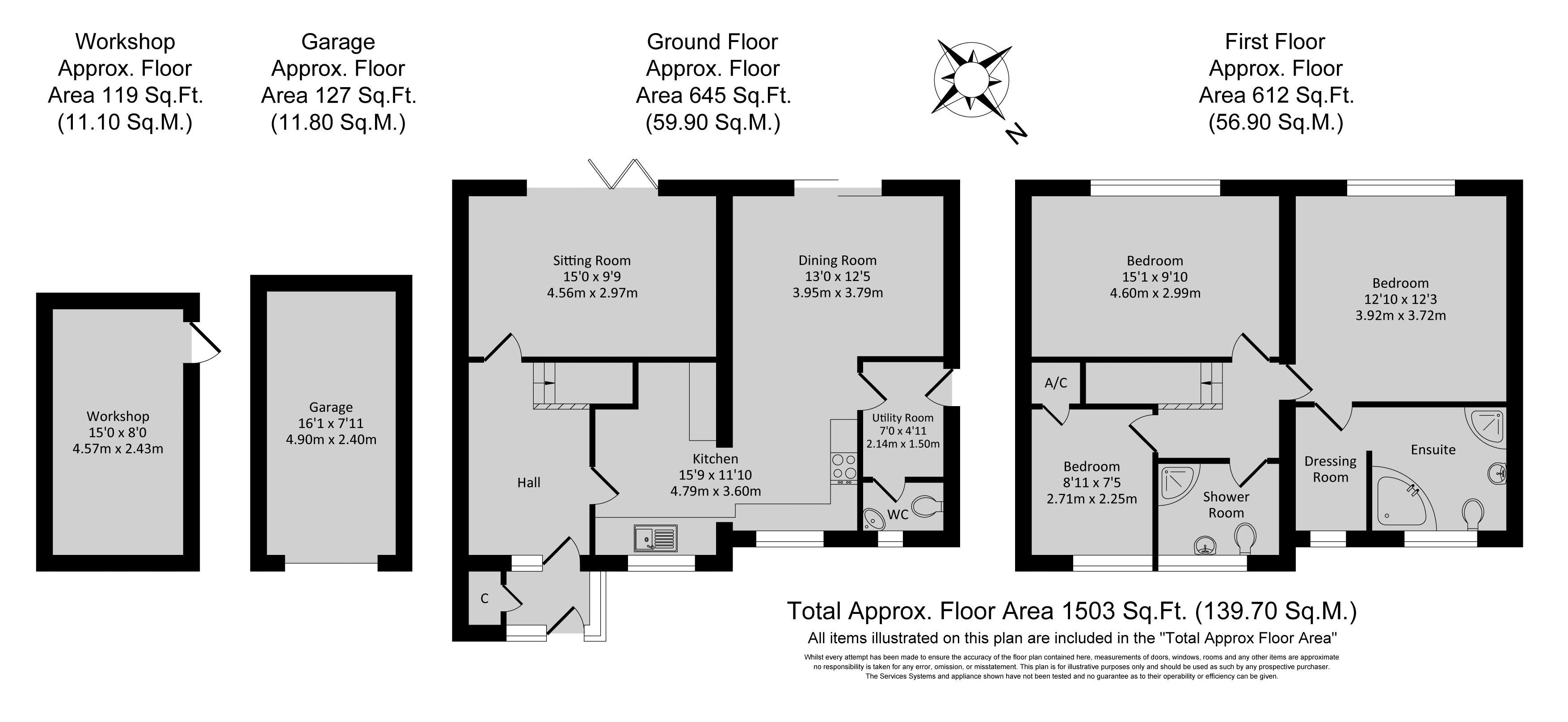 To the front of the property there is a lawned garden with a pathway to the front door. To the rear there is a landscaped garden which is laid to lawn and has a large, decked seating area. There is also a large timber workshop with power and light connected and a gate to the rear.