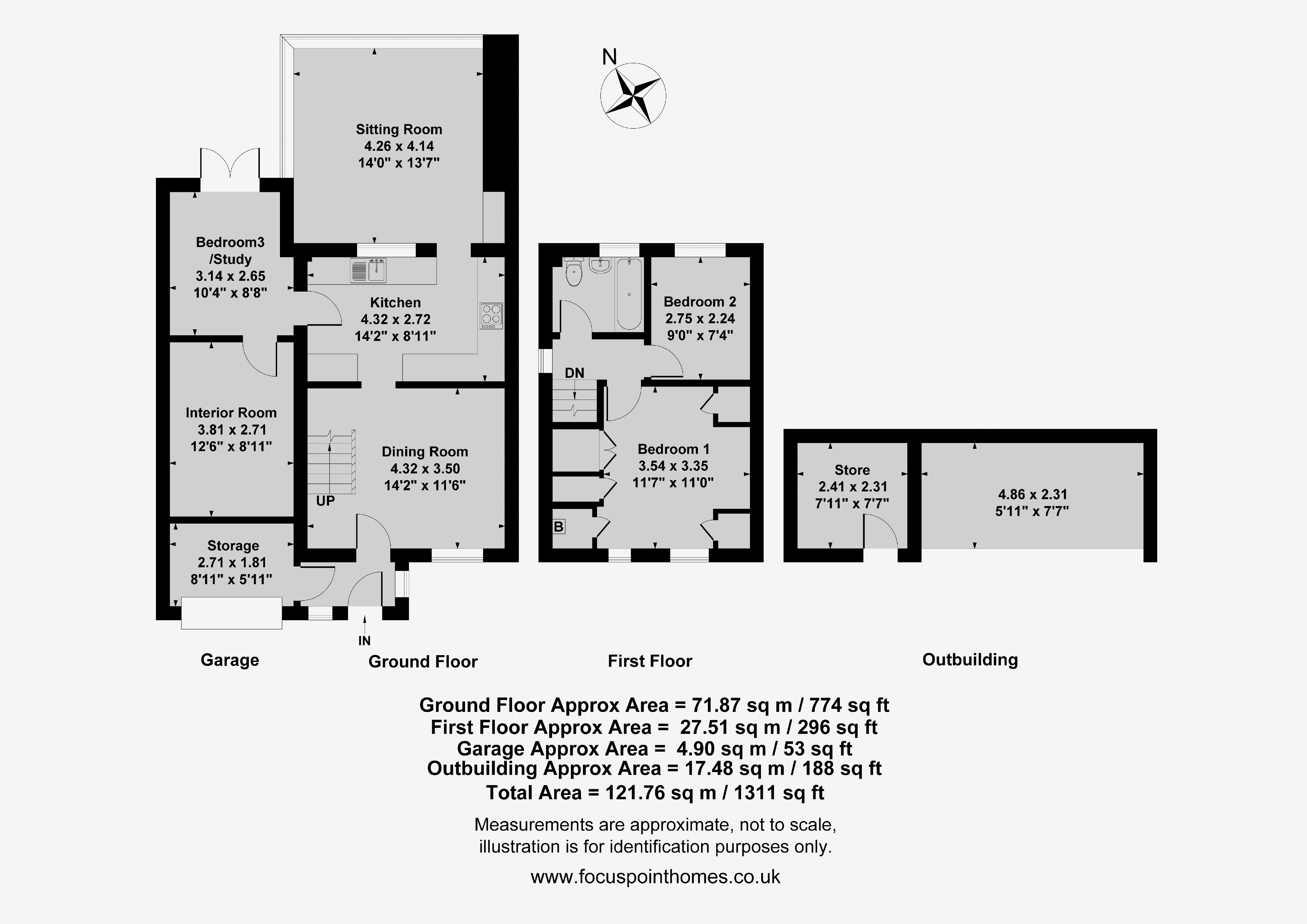 Recently re-fitted with a white suite comprising of a toilet, wash basin, panelled bath, panelled splash backs and there is a window to the rear aspect.