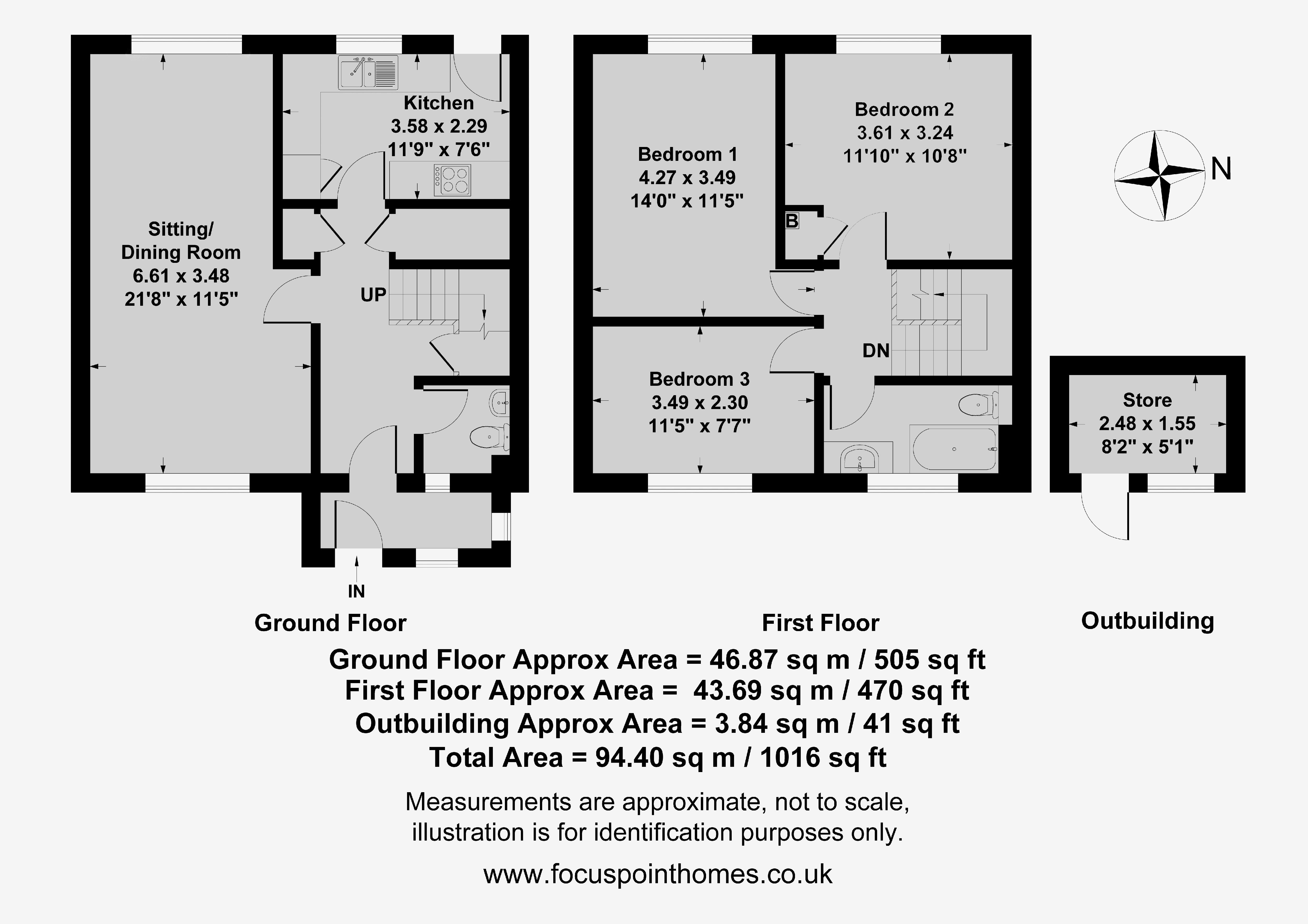 Fitted with a W.C., wash hand basin, tiled flooring and splashbacks and a window to the front aspect.