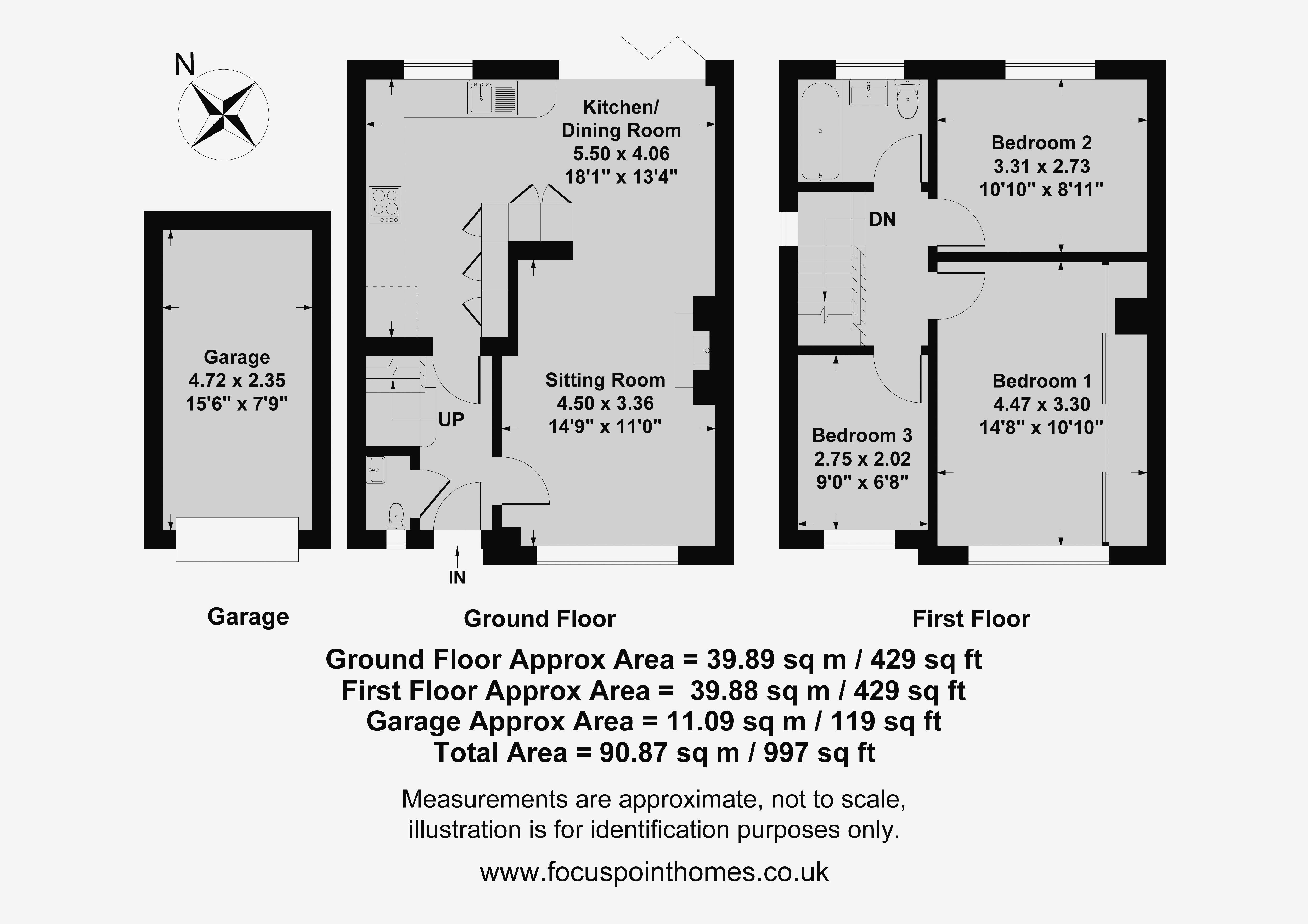 Situated behind the rear garden, there is a single garage with an up and over door to the front and power and light connected. There is a driveway adjacent for one vehicle.