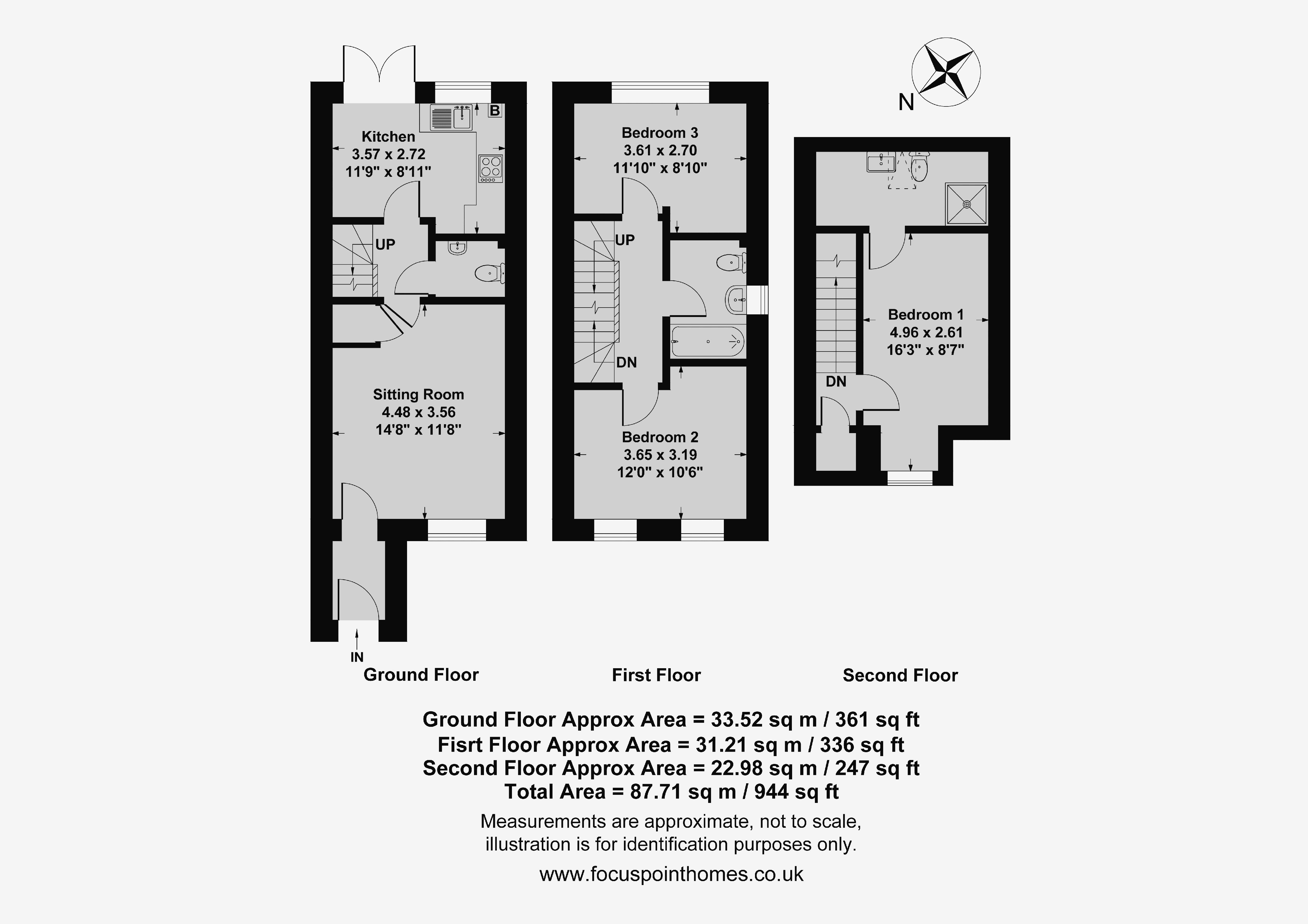 51 De La Warr Drive, Banbury is a modern three bedroom, end of terrace townhouse forming part of the Hanwell Chase development towards the outskirts of town. Constructed by Persimmon Homes in 2018, the property offers spacious accommodation arranged over three floors. On the ground floor there is an entrance porch, sitting room, lobby, cloakroom/W.C. and a kitchen/breakfast room. On the first floor there is a central landing, two double bedrooms and a modern family bathroom with stairs rising to the second floor for access to the large master bedroom and en-suite shower room. Outside of the property to the front there is a small, gravelled garden area and two allocated parking spaces. The main area of garden is located to the rear and is predominantly laid to lawn with a patio seating area adjoining the house. We have prepared a floorplan to show the room sizes and layout. Some of the main features include: