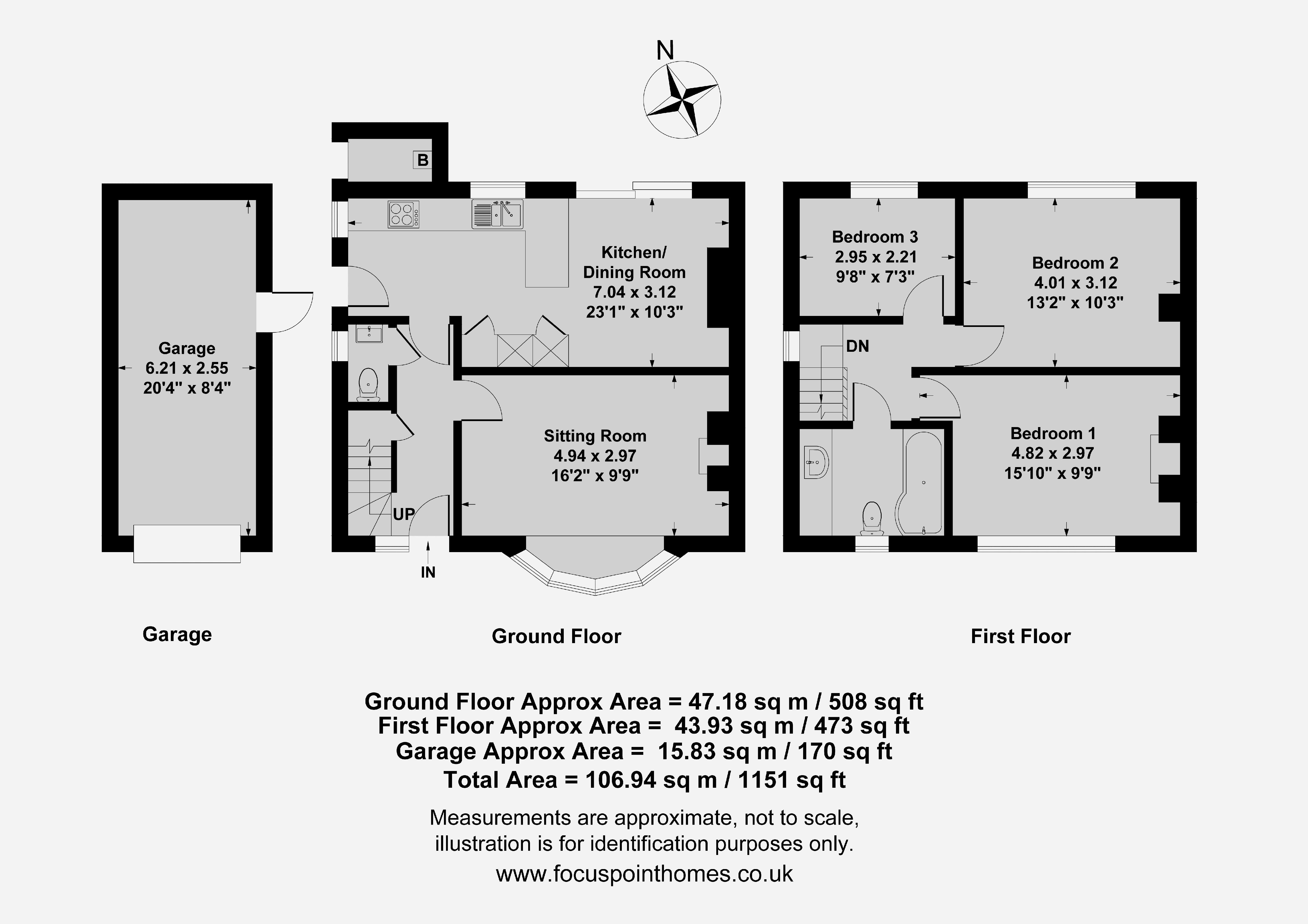 Fitted with a white suite comprising a panelled bath with a shower over, W.C. and wash hand basin with a window to the front aspect.