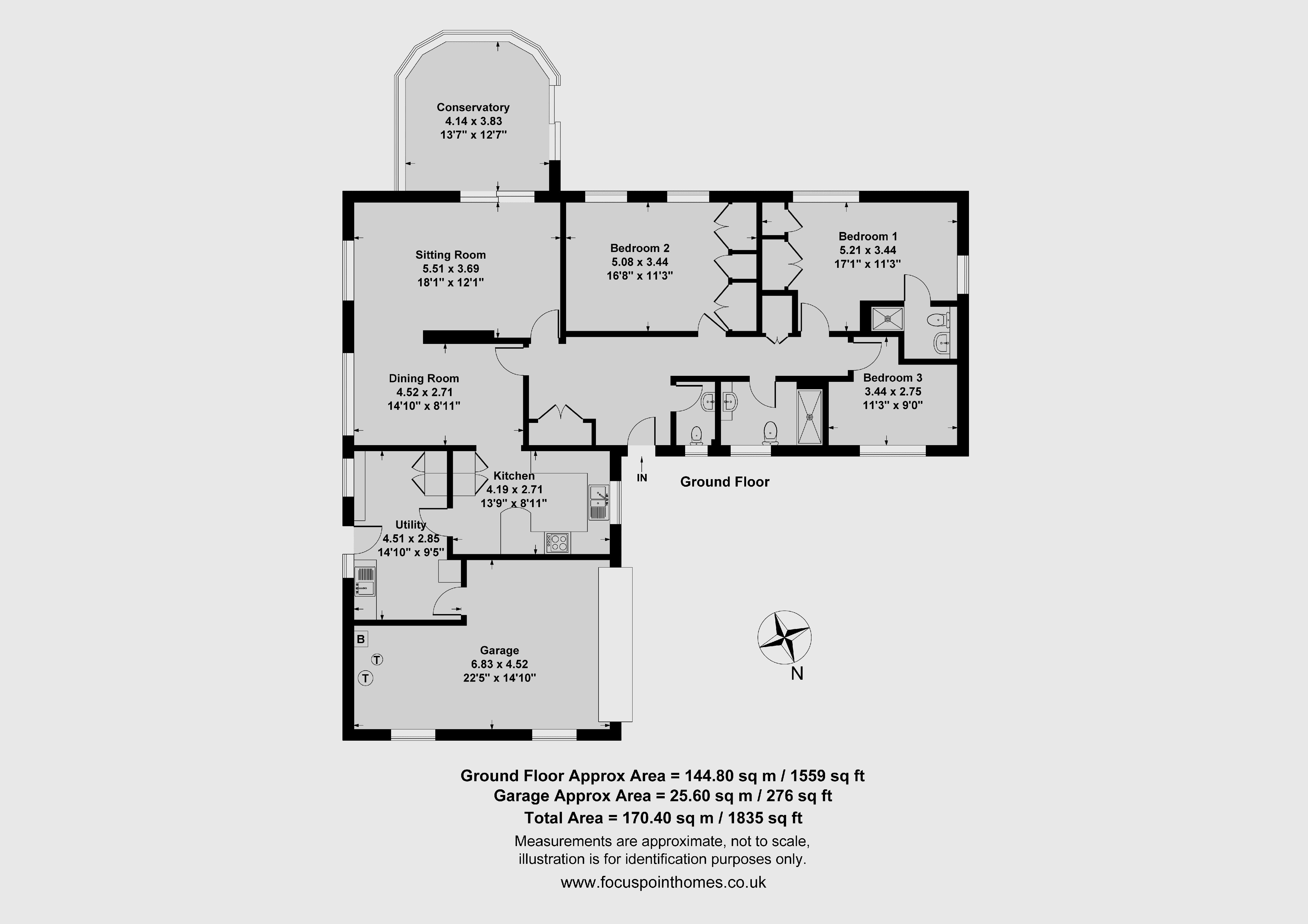 A practical utility room providing additional storage and space for appliances, helping to keep the main kitchen area uncluttered. Door to rear garden and door to garage.